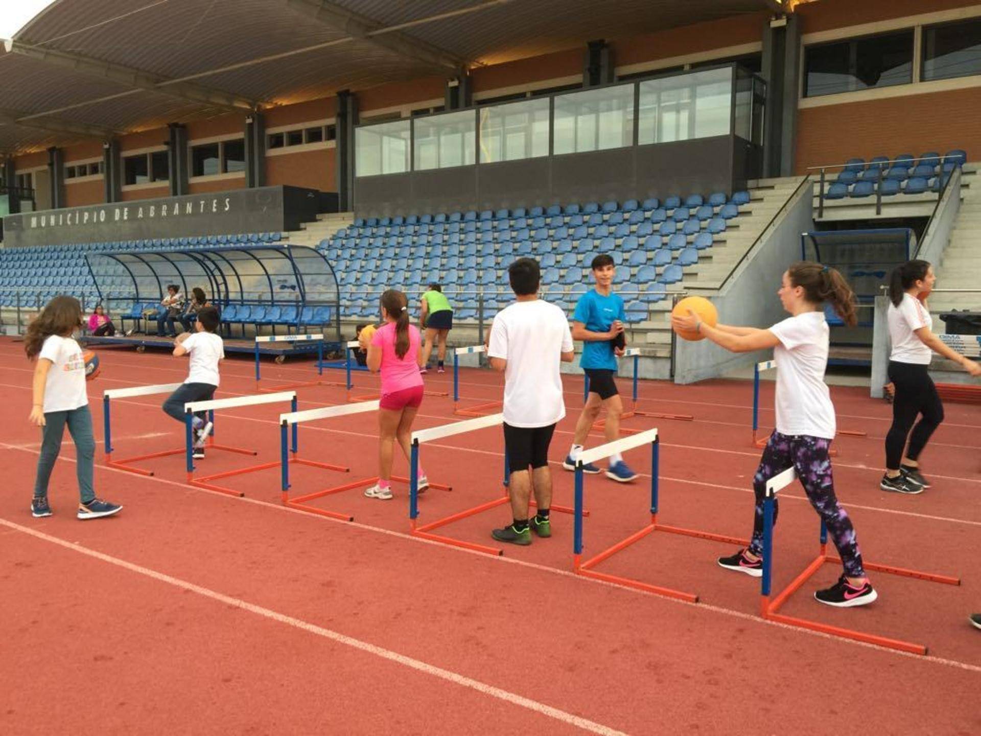 Quantos atletas integram o projeto que se reúne ao final de tarde na pista do Estádio Municipal de Abrantes?