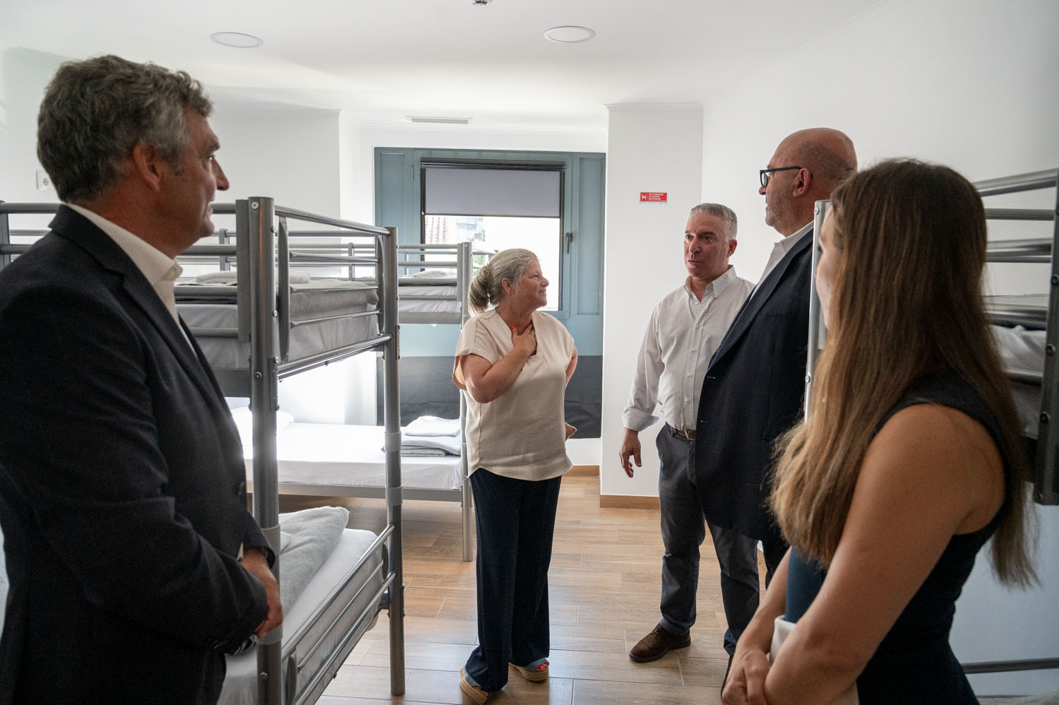 Relativamente a valores e reservas, Paulo Rosa salientou que o custo do alojamento está definido “já para baixo custo, tanto no inverno como no verão” e que as reservas para o hostel ainda não se encontram disponíveis nas plataformas online: “Nos quartos que não dispõem de casa de banho privativa temos capacidade para 19 pessoas e estamos a vender a 20 euros por pessoa, a noite. Depois temos os quartos com cama de casal e casa de banho privativa que estamos a vender a 50 euros para um casal mas depois, por cada pessoa que vem a mais, mais 20 e assim sucessivamente... Não temos intenção de que o custo seja sazonal, portanto, este tipo de preço está definido já para baixo custo tanto no inverno como no verão. Aproveito para referir que este equipamento não aparece ainda nas plataformas de reserva, queríamos colocá-lo após a inauguração, brevemente estará online. Teremos também um sistema de consulta de fotografias do espaço e de reservas no próprio site da nossa empresa, onde os clientes poderão fazer o pagamento do alojamento e receber de forma automática um código da porta de entrada e da porta do quarto. Portanto, é um equipamento que também está preparado para os check-in automáticos e está virado para o futuro não só nesse aspeto, como também nos sistemas de energias alternativas, com um sistema fotovoltaico que alimenta uma boa parte da energia do edifício e tem também uma parte de painéis de aquecimento de água”.