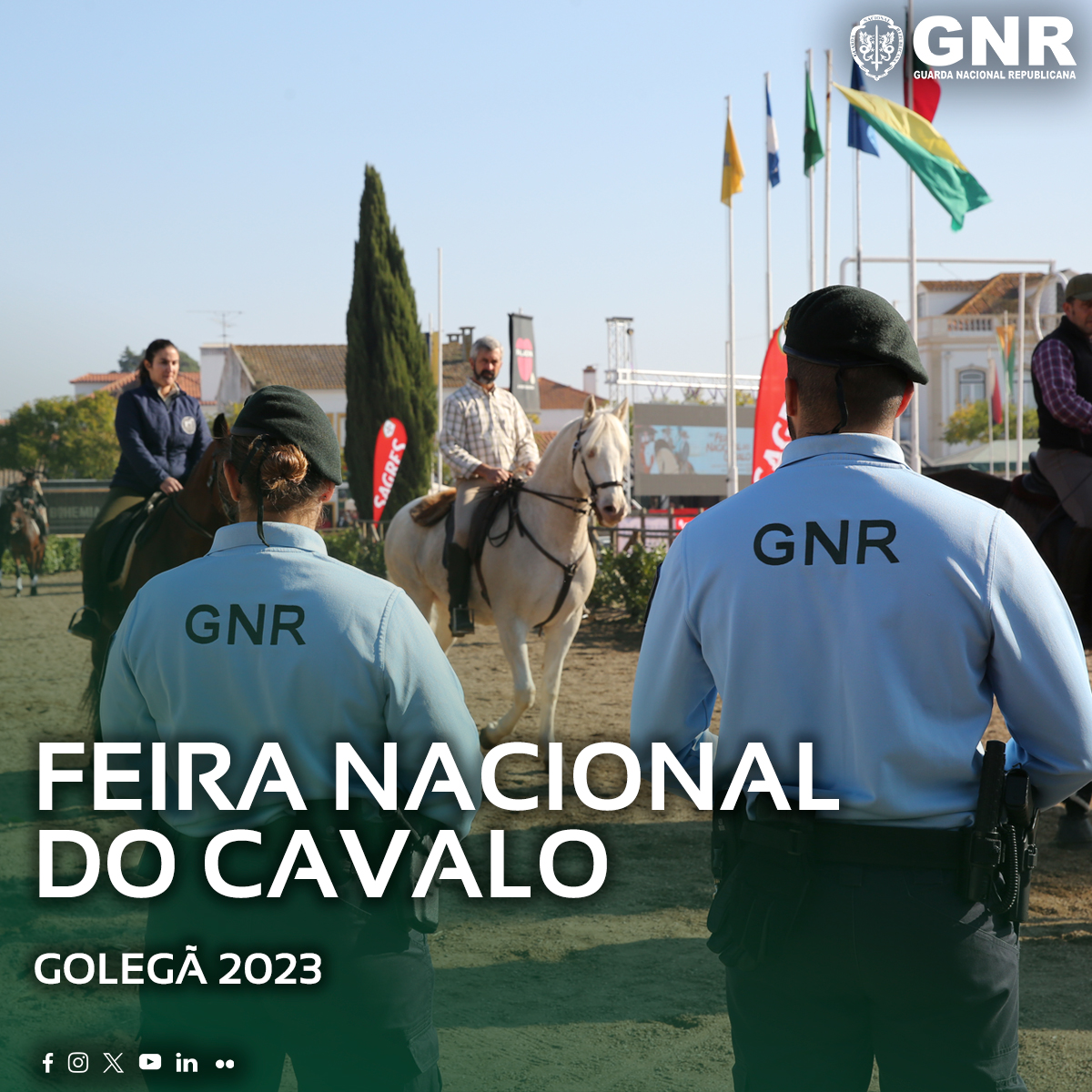 A Guarda Nacional Republicana (GNR), através do Comando Territorial de Santarém, dá conta que entre os dias 3 e 12 de novembro, realizou uma operação de segurança no âmbito da Feira Nacional do Cavalo, na Golegã e zona envolvente, de modo a garantir a segurança e a tranquilidade pública de todos os visitantes, entidades e habitantes locais, bem como o controlo e fluidez rodoviária.