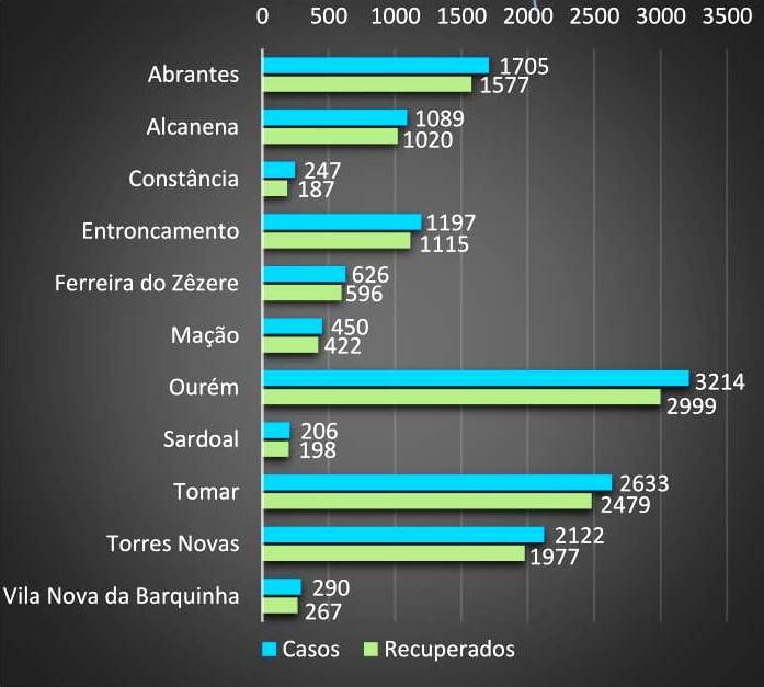A USPMT indica que estes 563 casos ativos estão localizados em Abrantes (59), Alcanena (30), Constância (57), Entroncamento (51), Ferreira do Zêzere (13), Mação (13), Ourém (130), Sardoal (3), Tomar (98), Torres Novas (85) e Vila Nova da Barquinha (14).