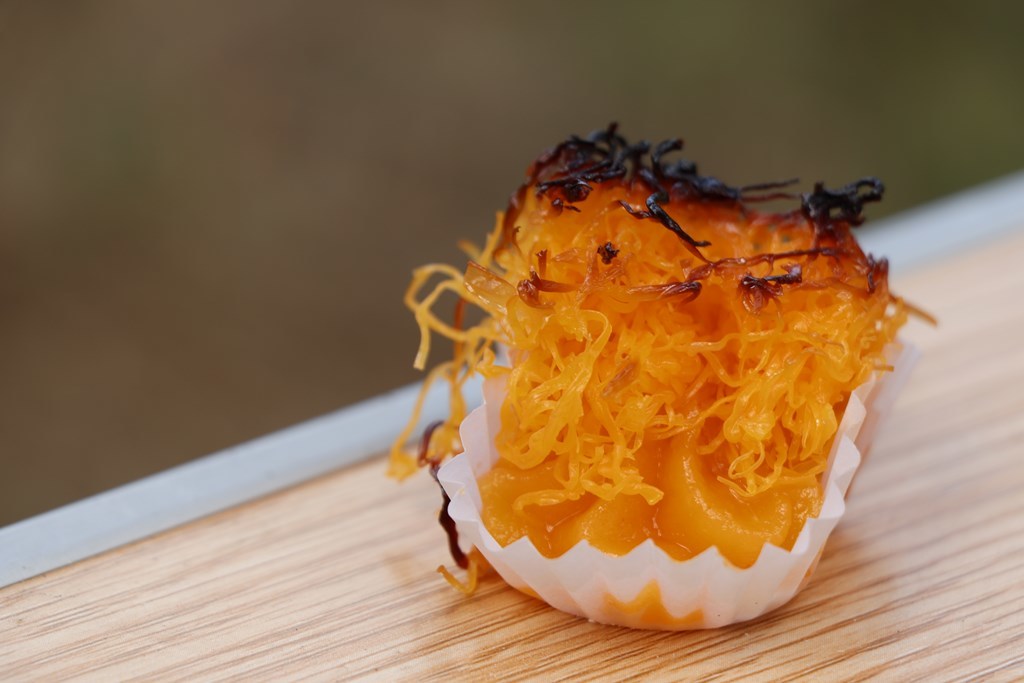 O Chef Fernando Correia explicou que é um “refresh” da Palha de Abrantes que já andava a ser ensaiado, embora apresentasse um problema: “A humidade dos ovos-moles, que é uma das bases do doce típico de Abrantes. Ela rebentava o bombom, porque o açúcar escorria”.