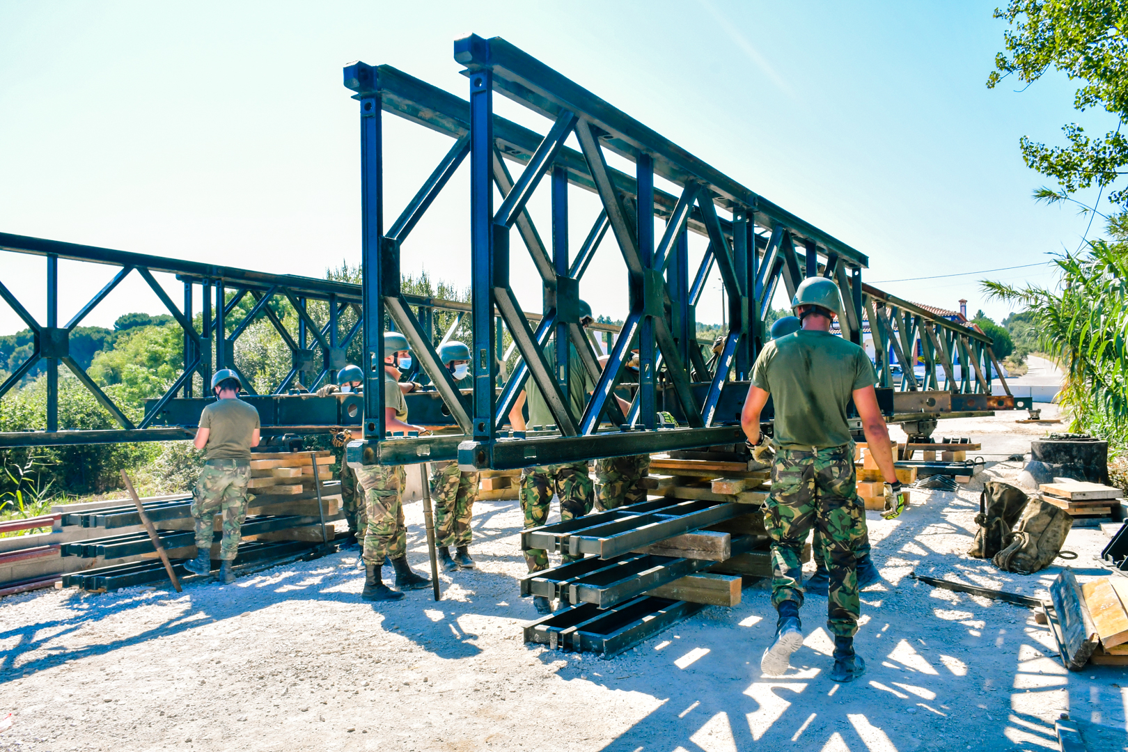 A operação de montagem desta ponte militar terá o empenhamento direto de um efetivo de 17 militares, 7 viaturas e 2 equipamentos de engenharia, e com uma duração prevista de 3 dias.