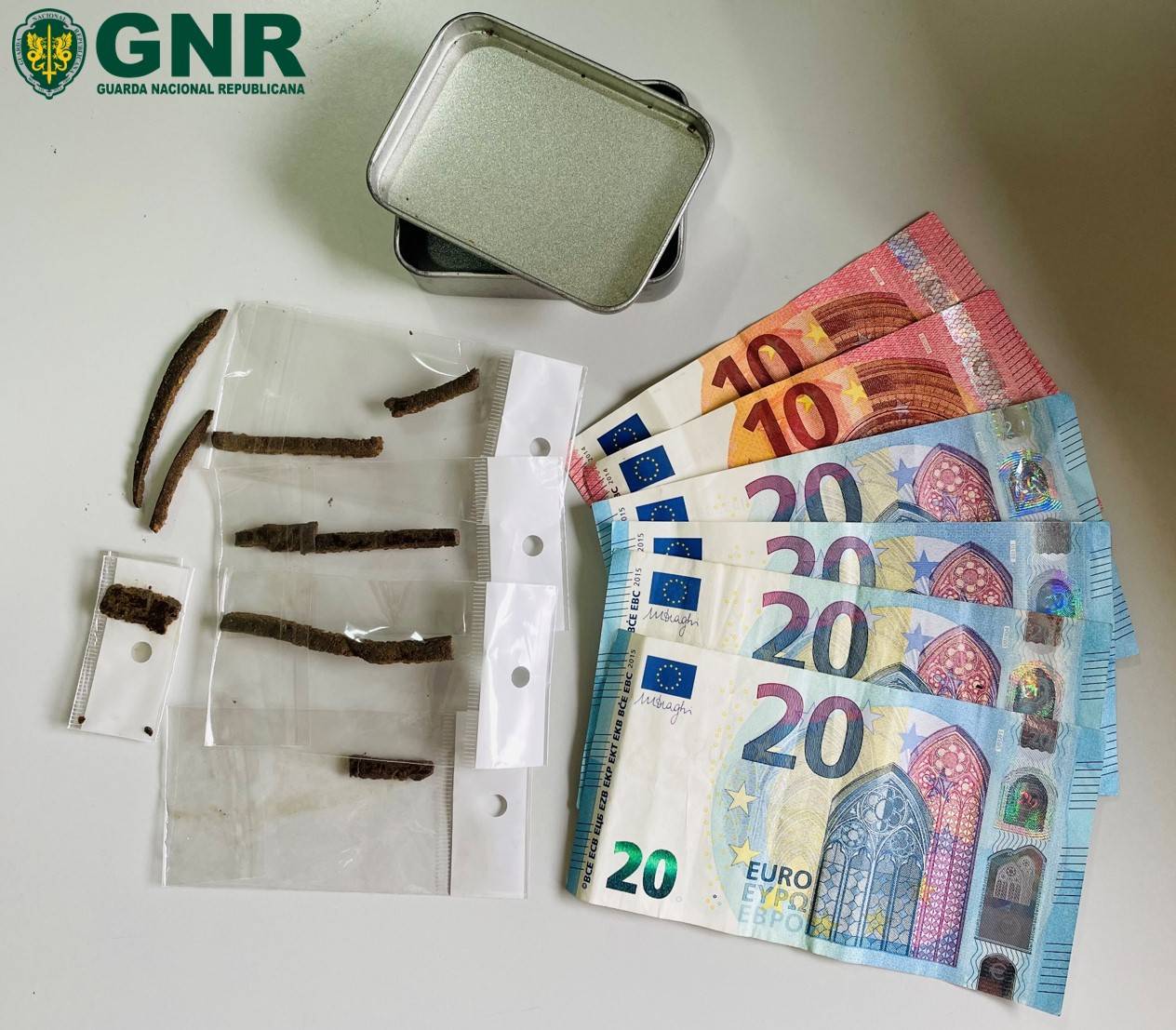 De acordo com a GNR “o suspeito foi detido em flagrante delito e aos outros dois indivíduos que efetuavam a transação, um deles menores, foram elaborados autos de contraordenação por consumo de estupefacientes.”