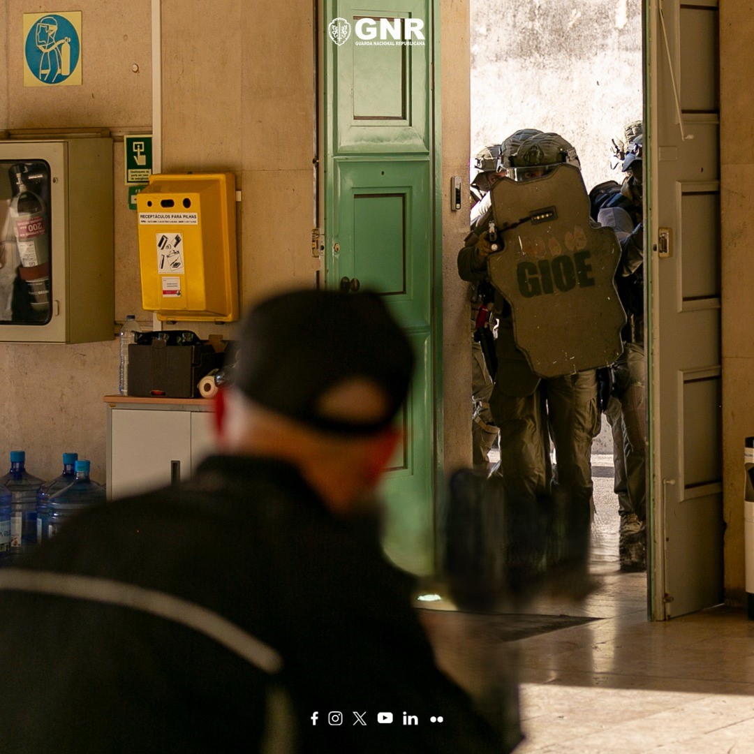 Neste caso concreto, na quarta-feira, o exercício teve como finalidade específica testar a capacidade e eficiência no “âmbito da segurança e proteção de infraestruturas, espaços públicos e outros pontos sensíveis, bem como contribuir para a resiliência global das infraestruturas envolvidas, tendo sido empenhados e coordenadas as diversas valências da GNR, nomeadamente a valência territorial, cinotécnica, de ordem pública, de operações especiais, de inativação de engenhos explosivos, de intervenção em cenários de matéria perigosas e de cuidados de emergência médica em ambiente tático.”