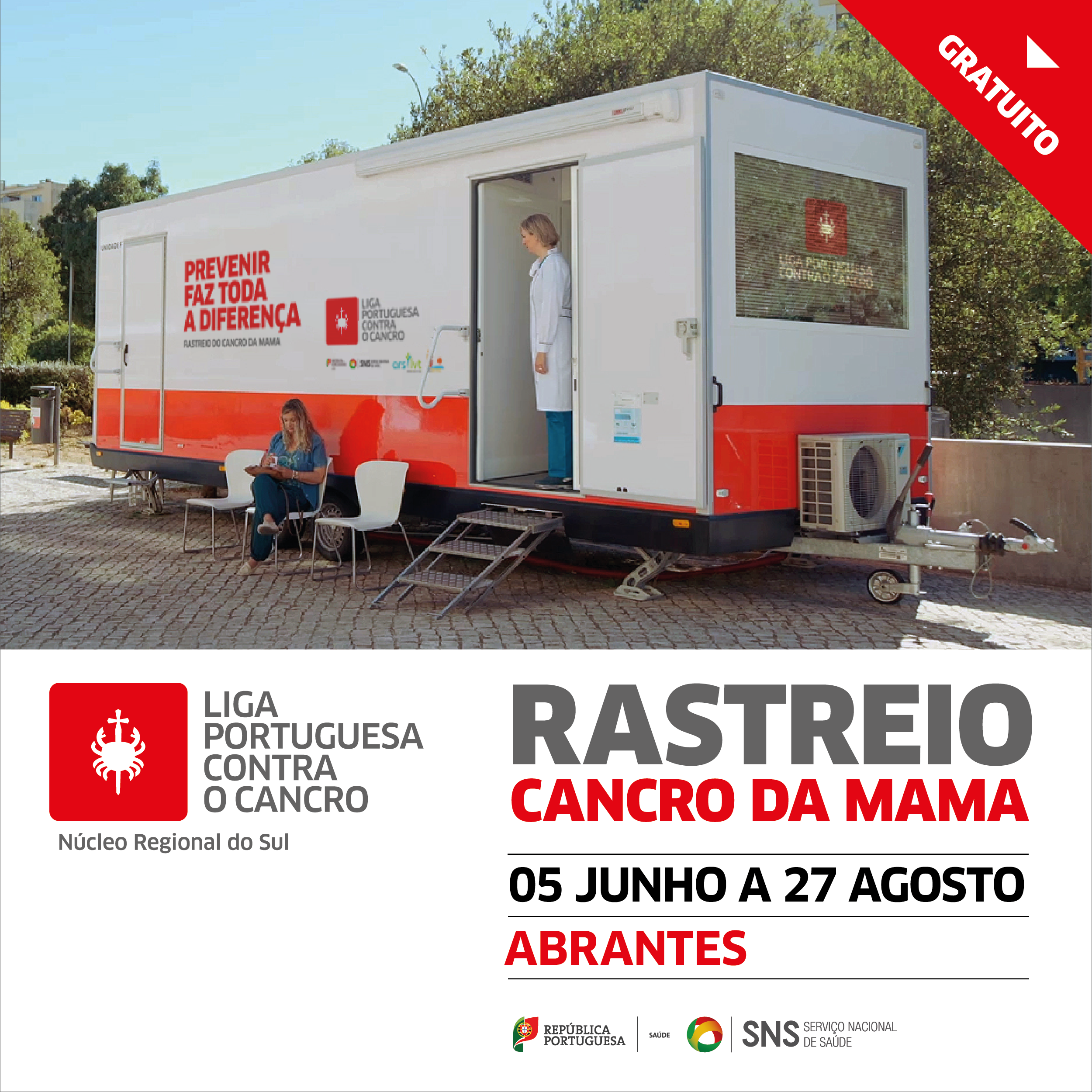 A Liga Portuguesa Contra o Cancro - Núcleo Regional do Sul (LPCC-NRS), em parceria com o Serviço Nacional de Saúde (SNS) está a dar continuidade do Rastreio do Cancro de Mama no concelho de Abrantes.