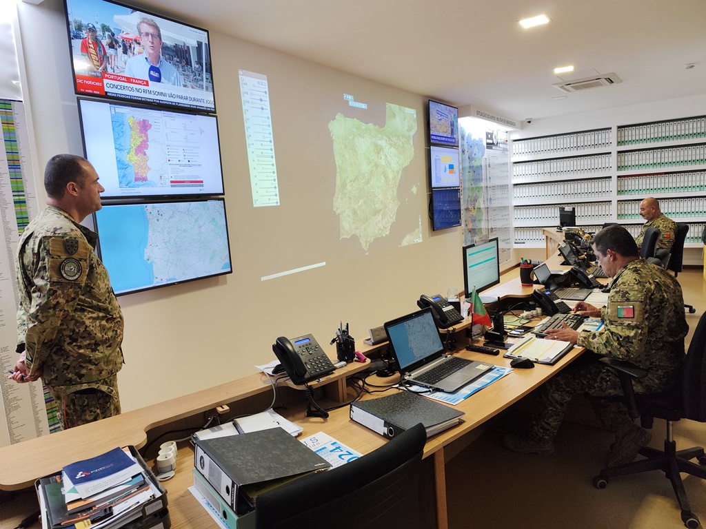 Nuno Melo teve ainda a oportunidade de poder ver a sala e comando em funcionamento, sendo que no dia da visita, o exército tinha equipas de vigilância de incêndios em Murça e no Algarve. E percebeu a forma como o Exército colabora nesta área em concreto, sendo certo que as equipas, quando deslocadas para um teatro de operações, não fazem combate direto. Ou fazem vigilância e prevenção, ou então cão chamados a ajudar para trabalhos de rescaldo. Mas há mais meios que podem ser empenhados, como máquinas de rasto. E é aqui que, afirmou o Tenente-General Paulo Pereira há uma “antecipação de eventuais saídas para o terreno. Se no comando percebermos que há uma situação grave ou com tendência a agravar, podemos antever que seremos chamados pela Proteção Civil e podemos ter os meios posicionados, para mais fácil agilização, quando necessário.”
