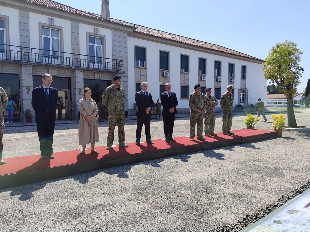 Nuno Melo, ministro da Defesa, Ana Isabel Xavier, secretária de Estado da Defesa, e Manuel Jorge Valamatos, presidente da Câmara de Abrantes, estiveram acompanhados pelo Vice-Chefe do Estado-Maior do Exército, Tenente-General Paulo Pereira, e pelo comandante do Regimento de Apoio Militar de Emergência (RAME), Coronel Tiago Lopes.