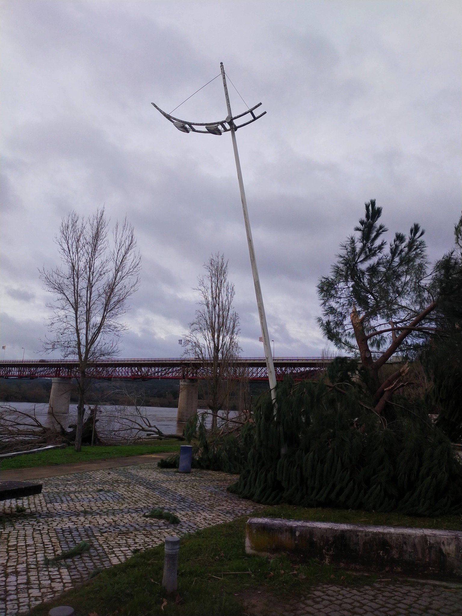 Queda de um poste de eletricidade cortou a Estrada Nacional 3, que está aberta, apenas com condicionalismos em Praia do Ribatejo. Em Tancos, a via está transitável.