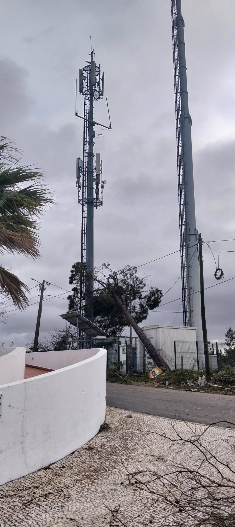 Antenas de telecomunicações partidas a meio, não há luz e não se perspetiva que venha a haver nas próximas horas porque a estrutura está comprometida, bem como as redes de telemóveis, o que prejudica os pedidos e a chegada atempada dos meios de socorro.