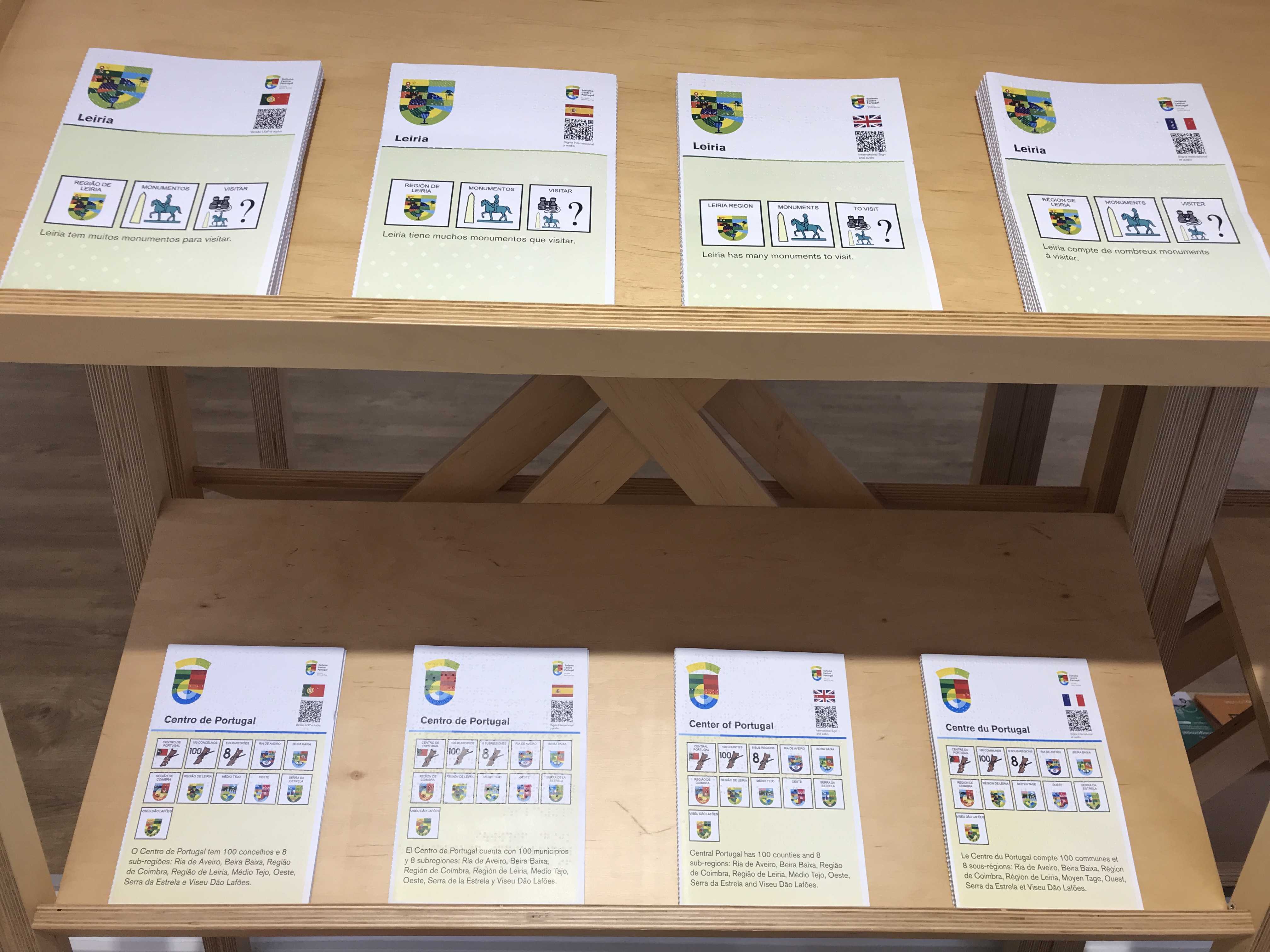 Da mesma forma, foram também impressos folhetos acessíveis, em português, espanhol, inglês e francês, com indicações para a visita à região Centro de Portugal e às cidades de Aveiro, Coimbra e Leiria. Os conteúdos dos folhetos estão disponíveis em linguagem simplificada, braille, linguagem pictográfica e língua gestual portuguesa e gestos internacionais. É possível aceder a estes conteúdos em formato digital, via QR Code.