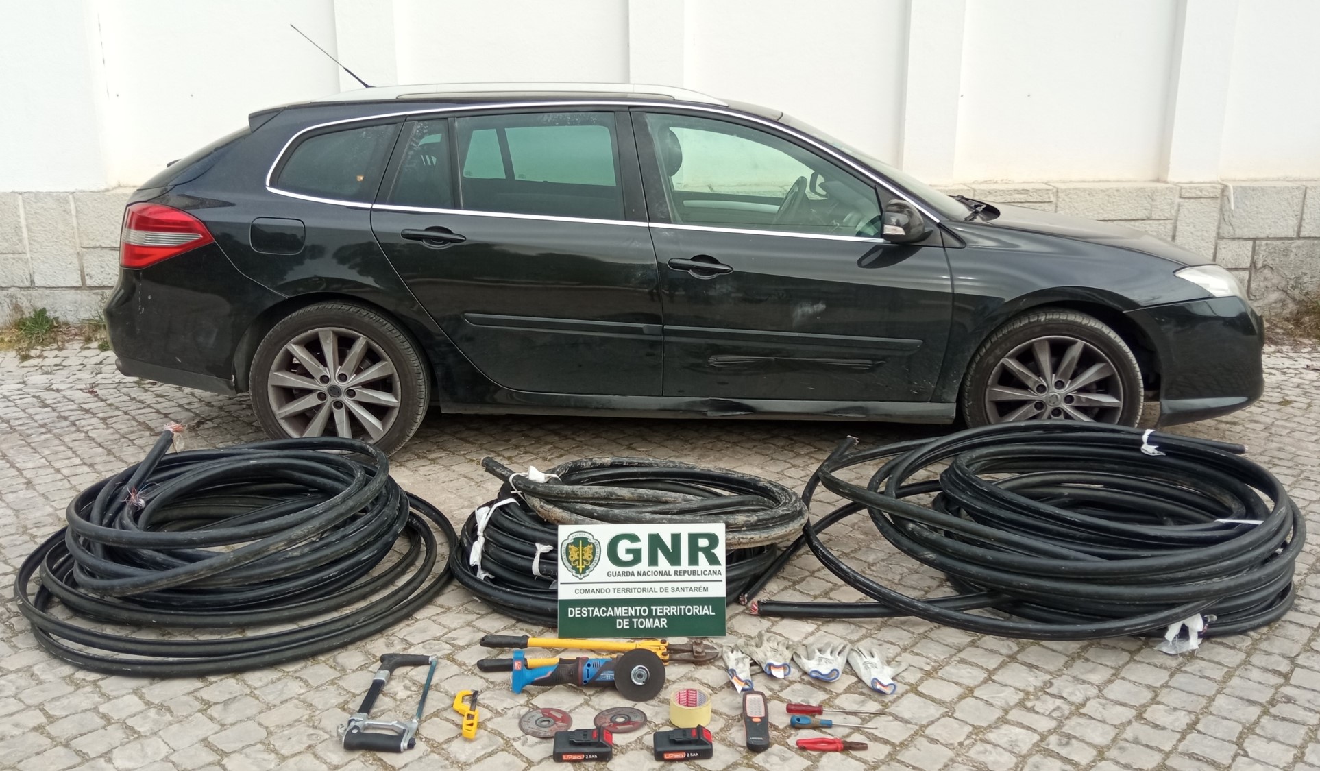 A viatura em que seguiam acabou por ser intercetada na cidade de Tomar, tendo os militares apreendido 250 quilogramas de fios de cobre, uma rebarbadora, um serrote de corte de ferro, uma tesoura de corte, um veículo e outro material, numa operação que contou com o reforço dos postos territoriais de Ferreira do Zêzere e de Ourém e com o apoio da Polícia de Segurança Pública (PSP) de Tomar.