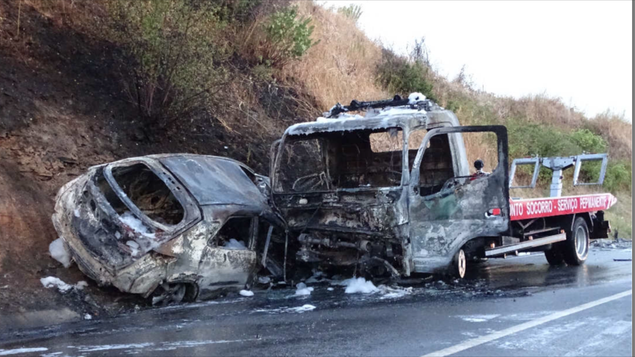 Segundo a mesma fonte, os dois veículos foram consumidos pelo incêndio que se seguiu pela encosta do castelo, mas sem atingir grandes proporções.