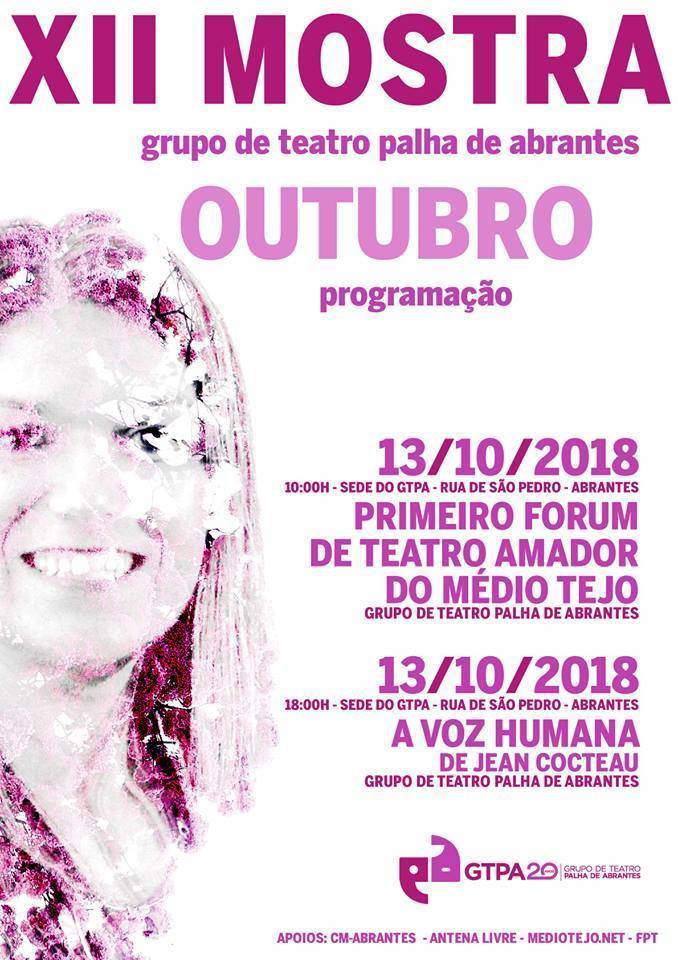 O Grupo de Teatro Palha de Abrantes está a promover a XII Mostra de Teatro com duas ações a decorrerem este sábado, dia 13 de outubro