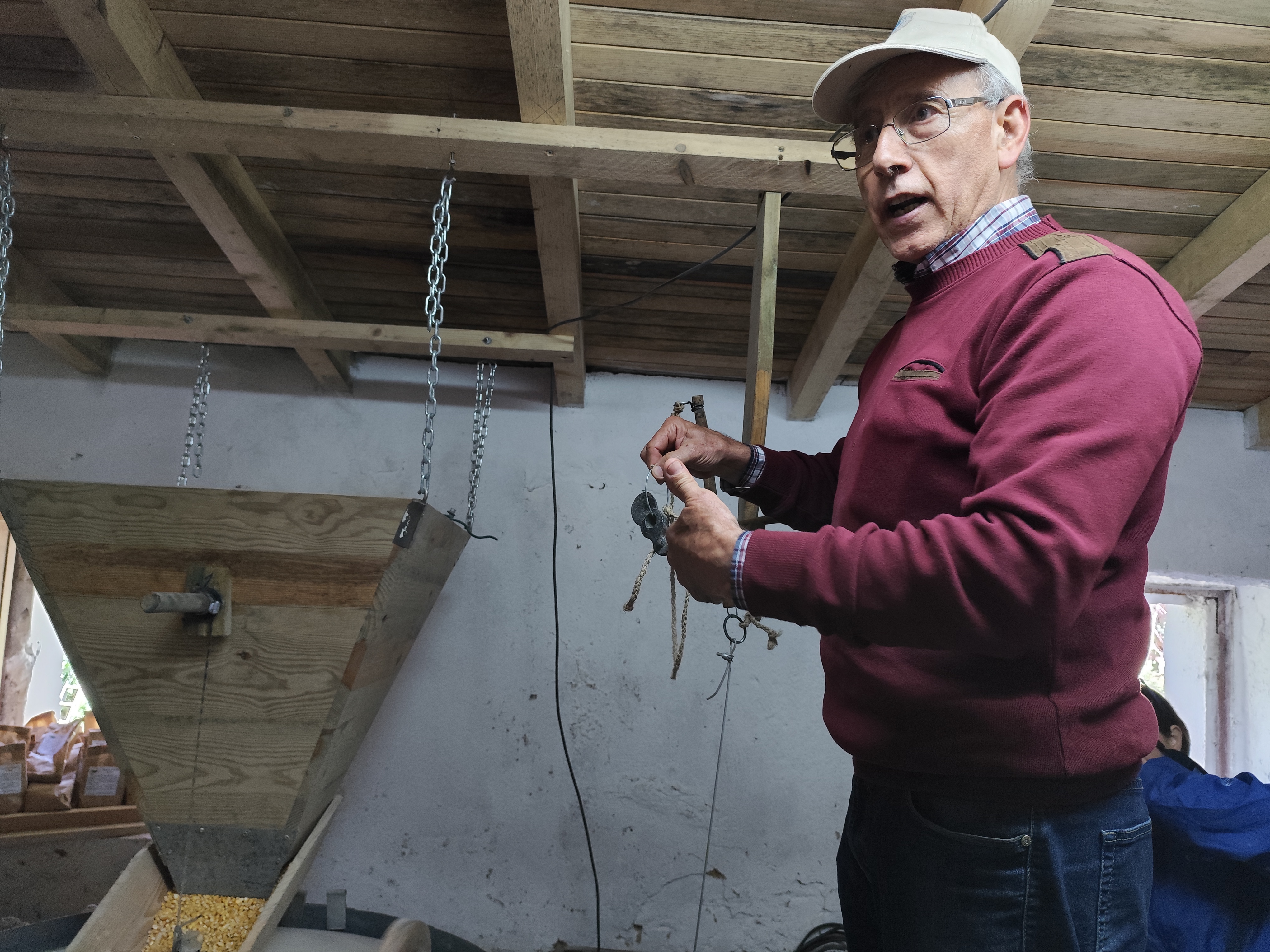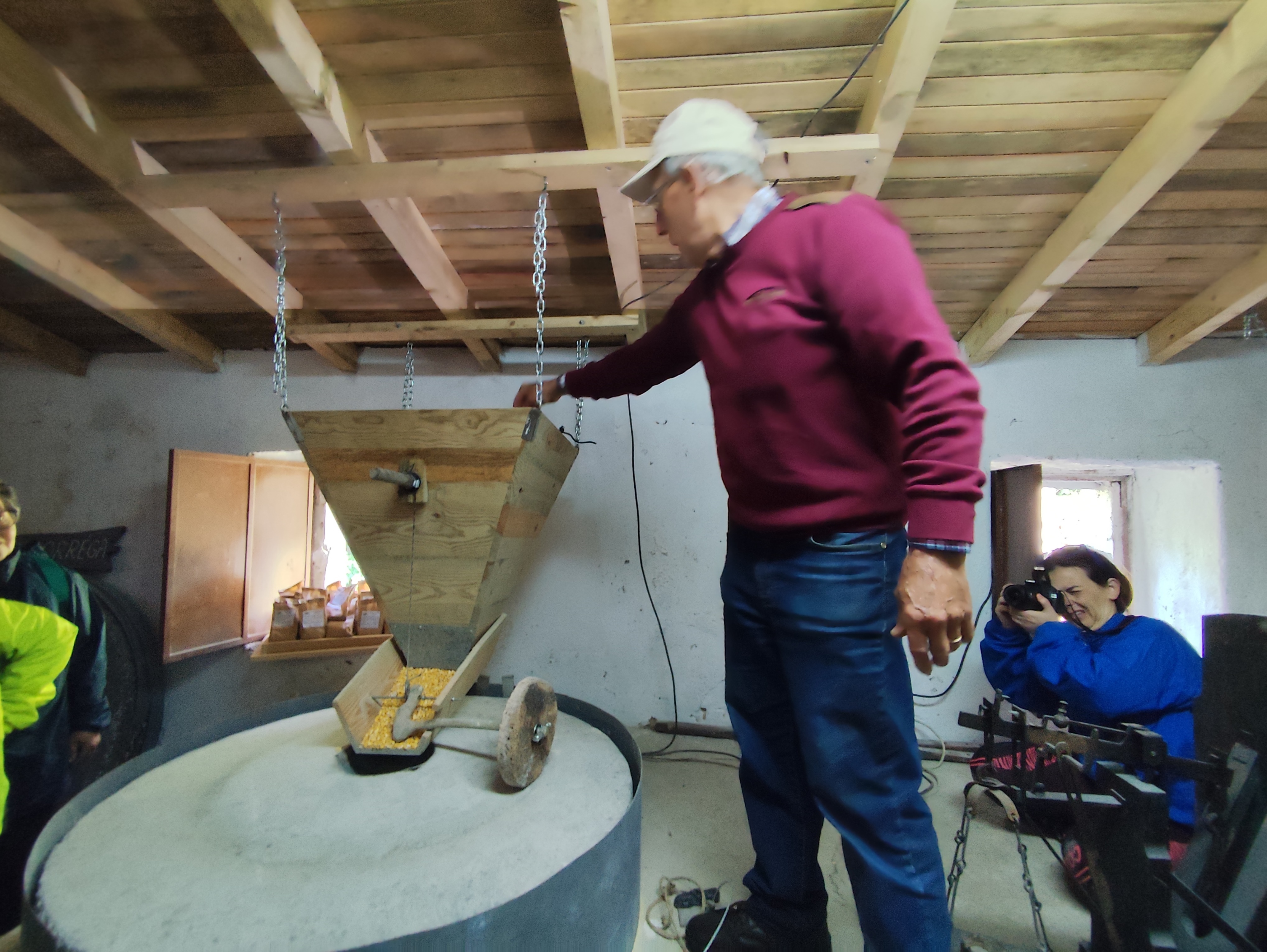 Pelo meio de muitas gargalhadas e muitas fotografias o grupo lá chegou, menos de três quilómetros depois da partida, ao ponto principal, à azenha do Manel do Tojal que voltou a ter a mós a rodar e a moer trigo e milho.