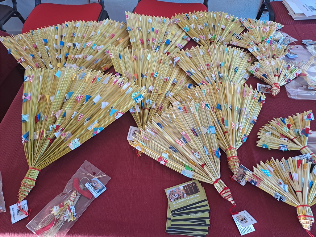 Os leques de palha, de Sardoal, feitos do palanco. Ou seja, são feitos com palhas, trapos e linhas vermelhas. Também podiam ser feitos de centeio, mas o palanco é uma planta invasora e até se ajuda o ambiente. Por outro lado, aproveitavam-se os restos de das costureiras.