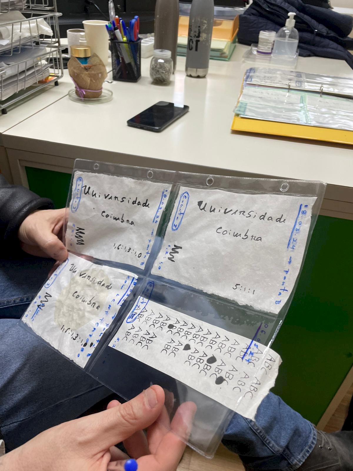 Durante a investigação, a equipa testou diferentes técnicas de aplicação, incluindo a colagem do filme ao papel com adesivos específicos. «Aplicamos os filmes em papel de trapos (usado para simular papel antigo) escrito com tinta ferrogálica (recriada em laboratório). Posteriormente, são feitos testes de envelhecimento acelerado em condições controladas de temperatura e humidade, entre outras, para avaliar a durabilidade e eficácia dos filmes», conta Ana Marques, membro do projeto.