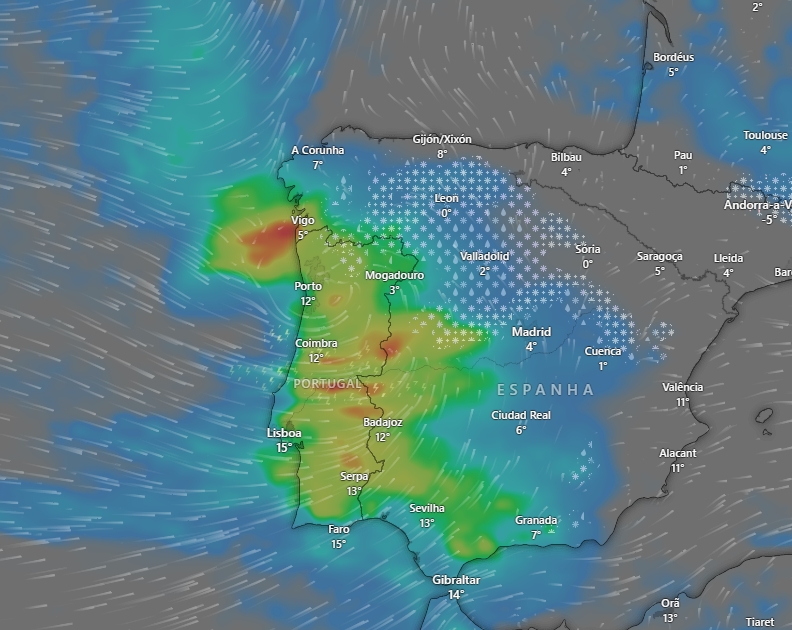 Segundo informações anteriores do IPMA, durante o dia de hoje haverá uma acalmia, mas o estado do tempo vai agravar-se a partir das 00:00 de quarta-feira.