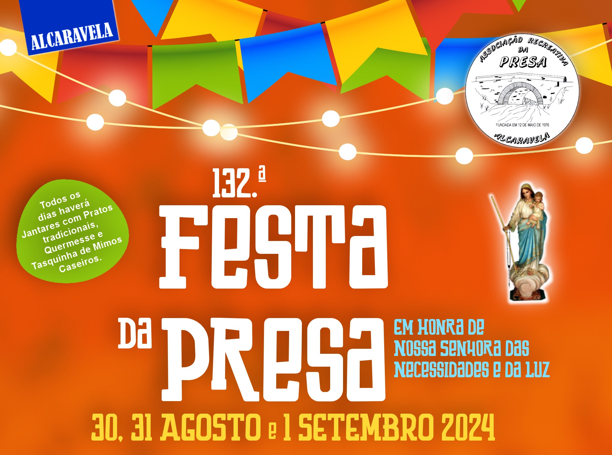 Nos dias 30 e 31 de agosto e no primeiro dia de setembro, irá decorrer a 132.ª edição da Festa da Presa, em honra de Nossa Senhora das Necessidades e da Luz.