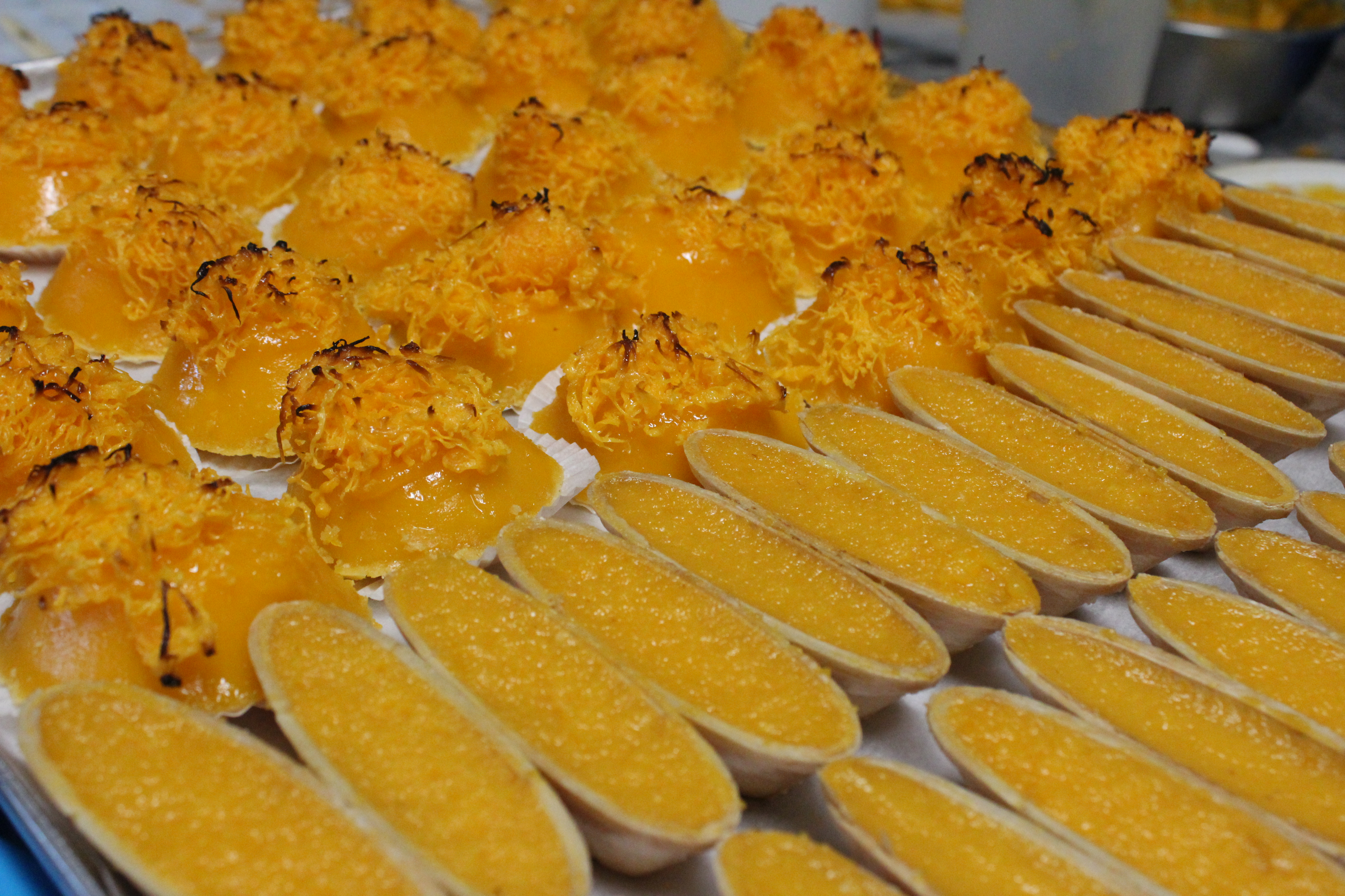 Foi ali que encontrámos o Chef a “forrar” uns “fardos de Palha” e a colocar o doce de ovos e amêndoa nas formas para depois poderem levar os fios de ovos “soltinhos e brilhantes” como faz questão de referir. As palhas e os fardos vão depois a gratinar para ganhar a cor e textura do forno e poderem ficar “pintalgados” com os fios mais escuros.