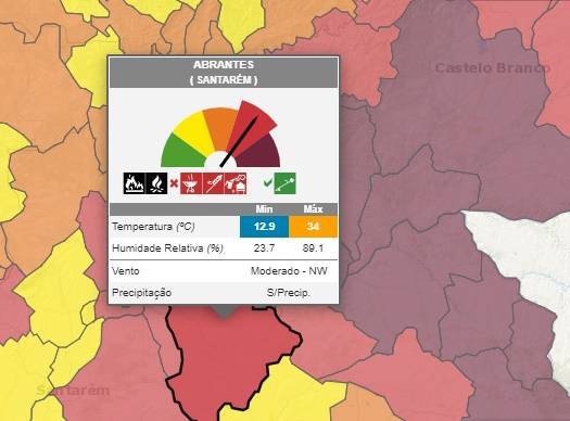 Em risco máximo de incêndio estão os concelhos de Monchique, Portimão, Silves, Loulé, São Brás de Alportel e Tavira (Faro), Portalegre, Marvão, Castelo de Vide e Nisa (Portalegre), Mação (Santarém) e Proença-a-Nova, Castelo Branco, Vila Velha de Ródão (Castelo Branco).
