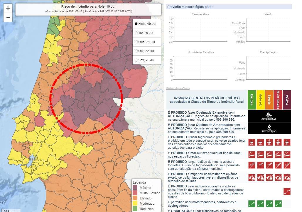 O período crítico de incêndios dura até final de setembro e, até lá, é proibido fazer queimadas extensivas ou queima de amontoados sem autorização, usar fogareiros ou grelhadores em todo o espaço rural, e fumar ou fazer qualquer tipo de lume nos espaços florestais.