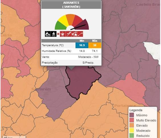 Quase cinco dezenas de concelhos estão hoje em risco muito elevado de incêndio, abrangendo os distritos de Viana do Castelo, Braga, Vila Real, Porto, Aveiro, Viseu, Coimbra, Leiria, Santarém, Lisboa, Portalegre, Beja e Faro.