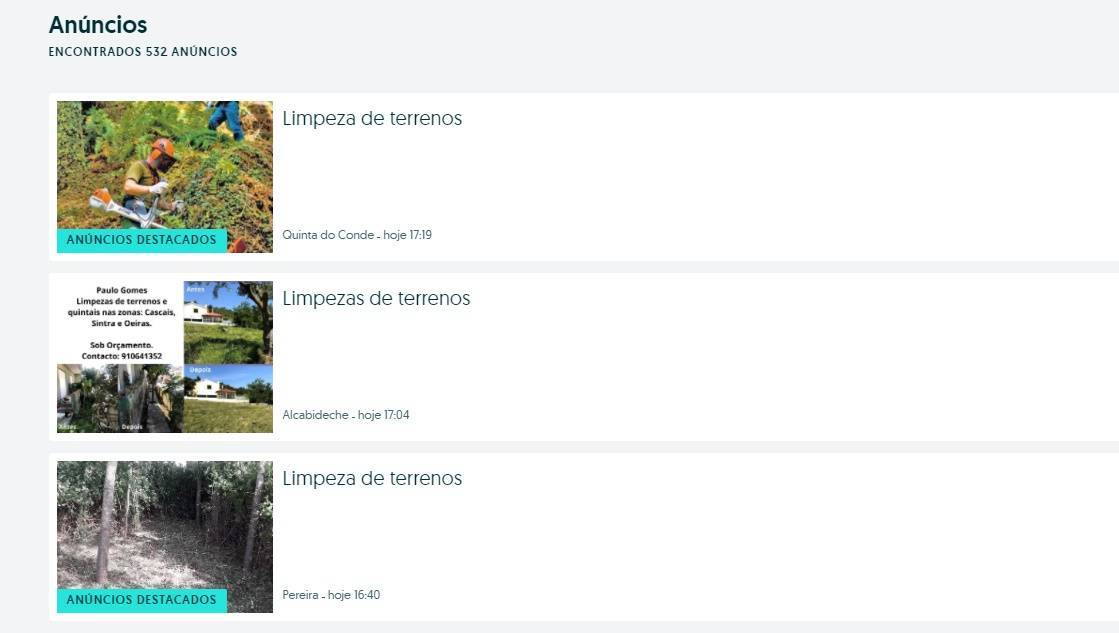 Sobre o preço médio anunciado para a limpeza de terrenos, a plataforma não dispõe dessa informação, “porque grande parte dos anúncios o valor que tem está sempre sob orçamento, portanto será um serviço que irá depender depois dos requisitos de quem está à procura”.