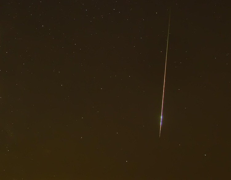Já agora fica a explicação que cada elemento químico destes meteoros tem uma cor característica quando é aquecido e ionizado ao entrar na atmosfera da Terra. Assim, os especialistas apontam a cor verde para a presença de níquel ou magnésio, o azul ou violeta pode indicar a presença de cálcio, o vermelho está associado a oxigénio atmosférico ou à presença de lítio enquanto o amarelo/dourado terá uma presença de sódio. Já o branco brilhante pode indicar a presença de vários elementos, mas geralmente mais rica em ferro ou silício.
