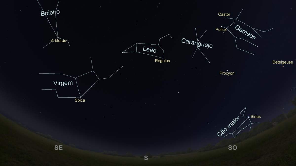 A fechar o mês, no dia 30, a constelação do Leão está a passar a Sul, bem alta no céu, mesmo ao anoitecer. Na mitologia grega, este era o Leão da Nemeia, associado ao primeiro dos doze trabalhos de Hércules. Este leão aterrorizava a população de Nemeia e como tinha o couro impenetrável, ninguém o conseguia deter. Hércules não teve melhor sucesso com as suas armas, tendo acabado por matar o animal por estrangulamento. Esta julga-se ser uma das origens possíveis para o nome do golpe de estrangulamento de artes marciais conhecido como “mata-leão”.