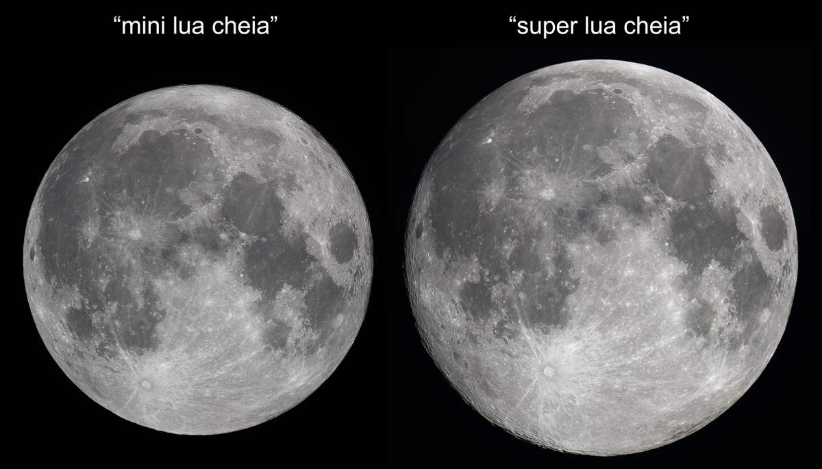 Em média, uma mini lua é pouco menor (cerca de 6,5%) e menos brilhante (cerca de 13%) do que uma lua cheia normal, mas quando comparada com uma “super lua cheia”, a diferença chega aos 14% de tamanho e 30% de brilho.