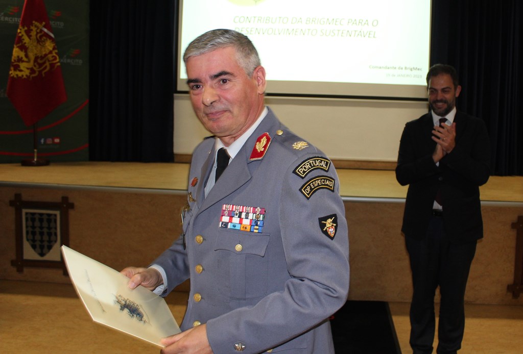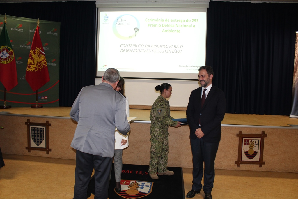 Duarte Cordeiro, ministro do Ambiente vincou que “o prémio que hoje aqui entregamos à Brigada Mecanizada, pelo seu projeto “Contributo da BrigMec para o Desenvolvimento Sustentável”, é uma espécie de síntese de ações concretas para o cumprimento desse objetivo, totalmente em linha com as políticas nacionais.” O governante elencou as áreas do prémio atribuído: “melhoria da gestão dos resíduos com orientação clara para a economia circular; proteção e monitorização de ar, água e solos com recurso ao tratamento das águas residuais e da chuva; encaminhamento de hidrocarbonetos para separadores; preocupações relativas à fauna e flora locais; preservação de charcos temporários; proteção de habitats de aves migratórias; e minimização dos riscos de incêndio.”