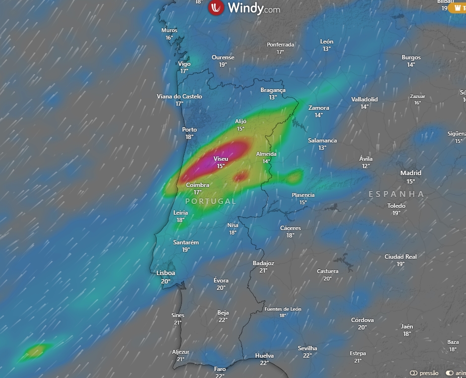 No final do dia de sexta-feira, segundo Patrícia Gomes, esta chuva vai estar “entre Setúbal e Portalegre e acaba por ficar aí durante algum tempo”.