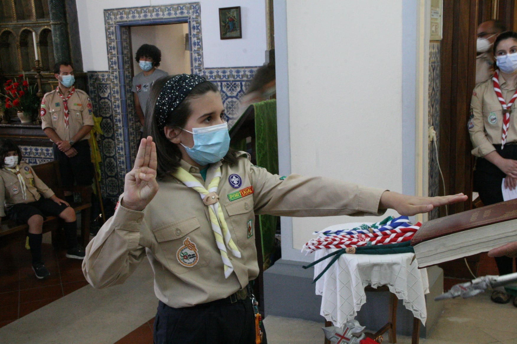 No sábado passado, dia 26 de junho, os escuteiros do Agrupamento 697 do Rossio ao Sul do Tejo realizaram as suas promessas. A cerimónia decorreu na Igreja Nossa Senhora da Conceição, antes da missa da comunidade para melhor se poder cumprir as normas da DGS. Na noite anterior os escuteiros juntaram-se na mesma Igreja para fazer a Velada de Armas.