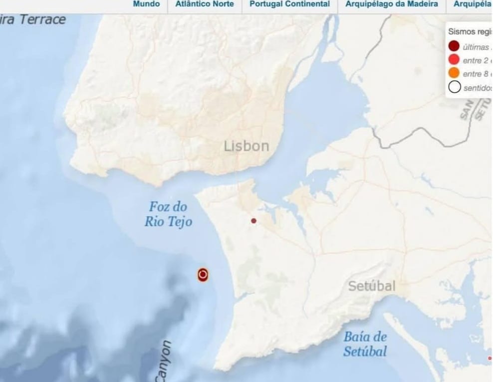 “Foi ainda sentido com menor intensidade nos concelhos de Odemira (Beja), Coimbra (Coimbra), Albufeira, Portimão (Faro), Alcobaça, Leiria (Leiria), Cascais, Lisboa, Loures, Mafra, Oeiras, Vila Franca de Xira, Amadora, Odivelas (Lisboa), Abrantes (Santarém), Barreiro, Moita, Palmela, Seixal, Sesimbra, Setúbal e Sines (Setúbal)”, informou o IPMA num comunicado divulgado às 14:11.