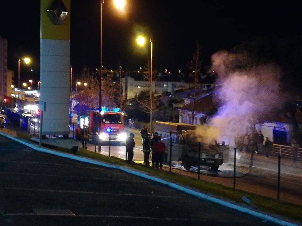 Sociedade Veículo de mercadorias consumido pelas chamas em Abrantes